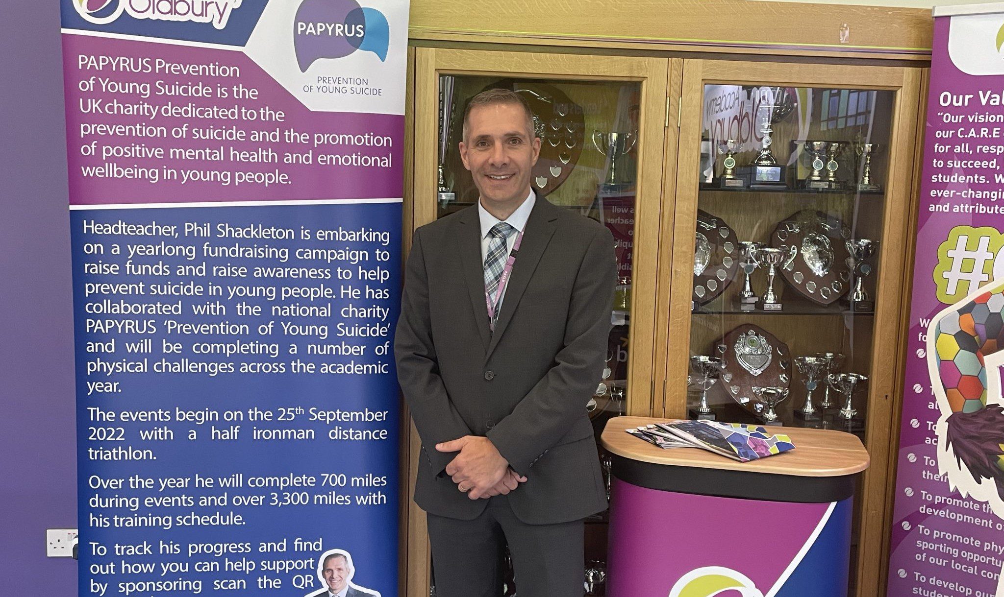 Oldbury Academy Headteacher, Phil Shackleton, is embarking on a year-long fundraising campaign to raise funds and awareness to help prevent suicide in young people. He has collaborated with the national charity PAPYRUS ‘Prevention of Young Suicide’ and will be completing a number of physical challenges across the academic year. Read more about Phil’s fundraising efforts and how to donate here.